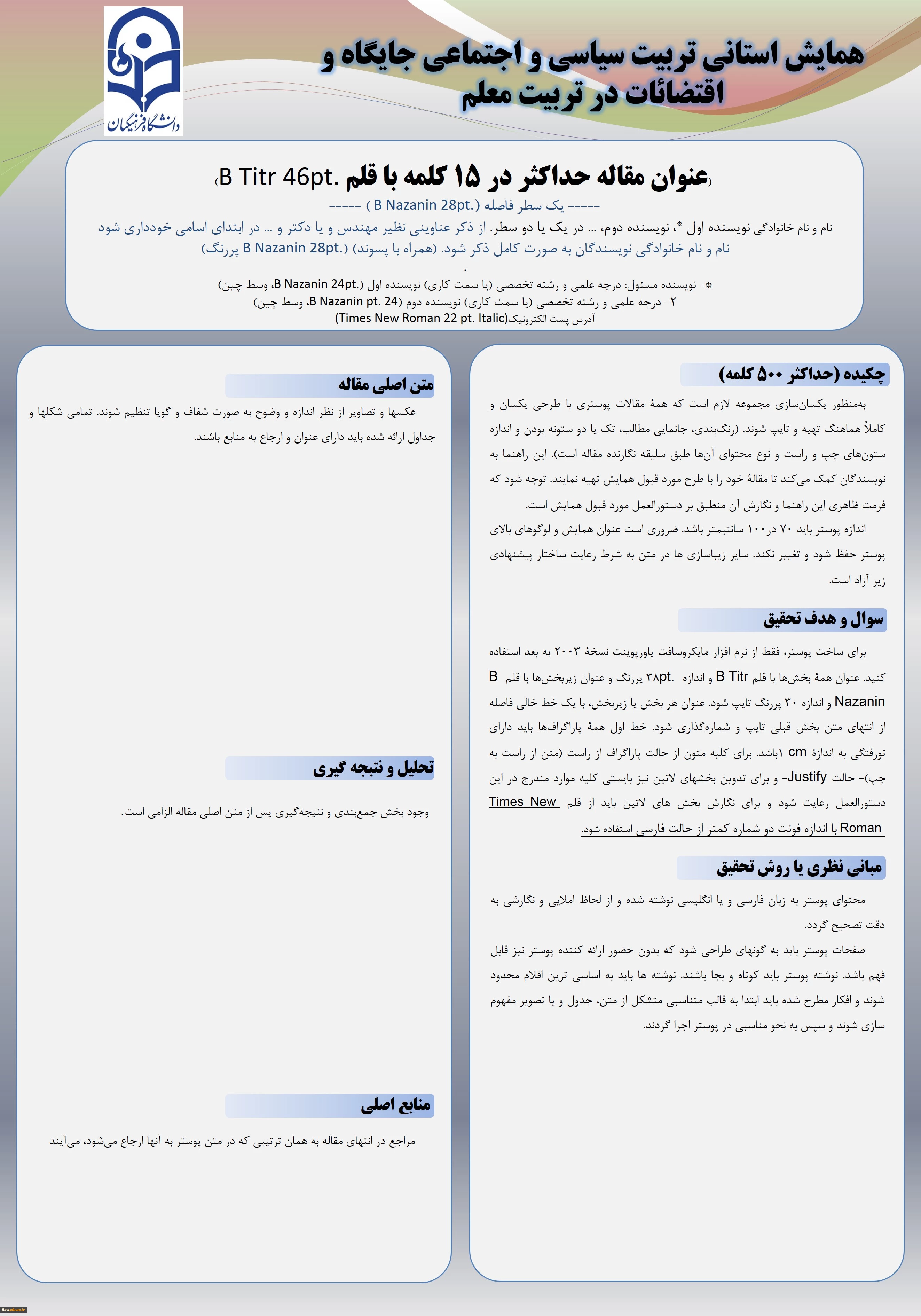 فرمت پوستر مقالات همایش استانی تربیت سیاسی و اجتماعی استان فارس