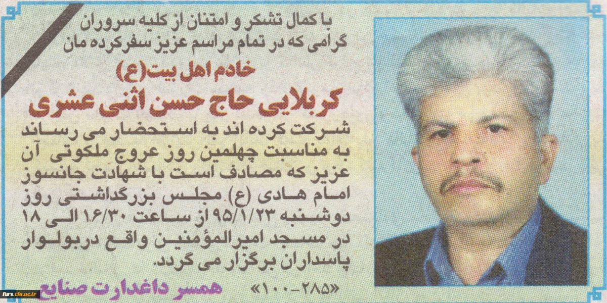 مراسم چهلیمن روز درگذشت کربلایی حاج حسن اثنب عشری همسر همکار گرامی سرکار خانم صنایع 2