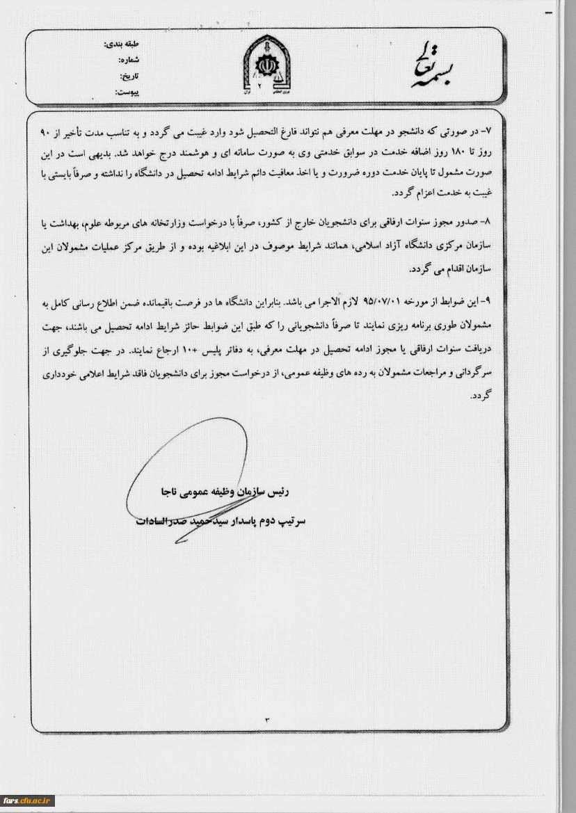 قابل توجه دانشجویان پسر دانشگاه فرهنگیان نامه سازمان وظیفه عمومی ناجا درخصوص حداکثر سنوات ارفاقی قابل تمدید درشرایط خاص 2