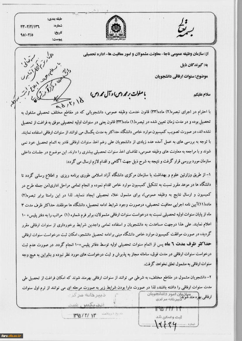 قابل توجه دانشجویان پسر دانشگاه فرهنگیان نامه سازمان وظیفه عمومی ناجا درخصوص حداکثر سنوات ارفاقی قابل تمدید درشرایط خاص 2
