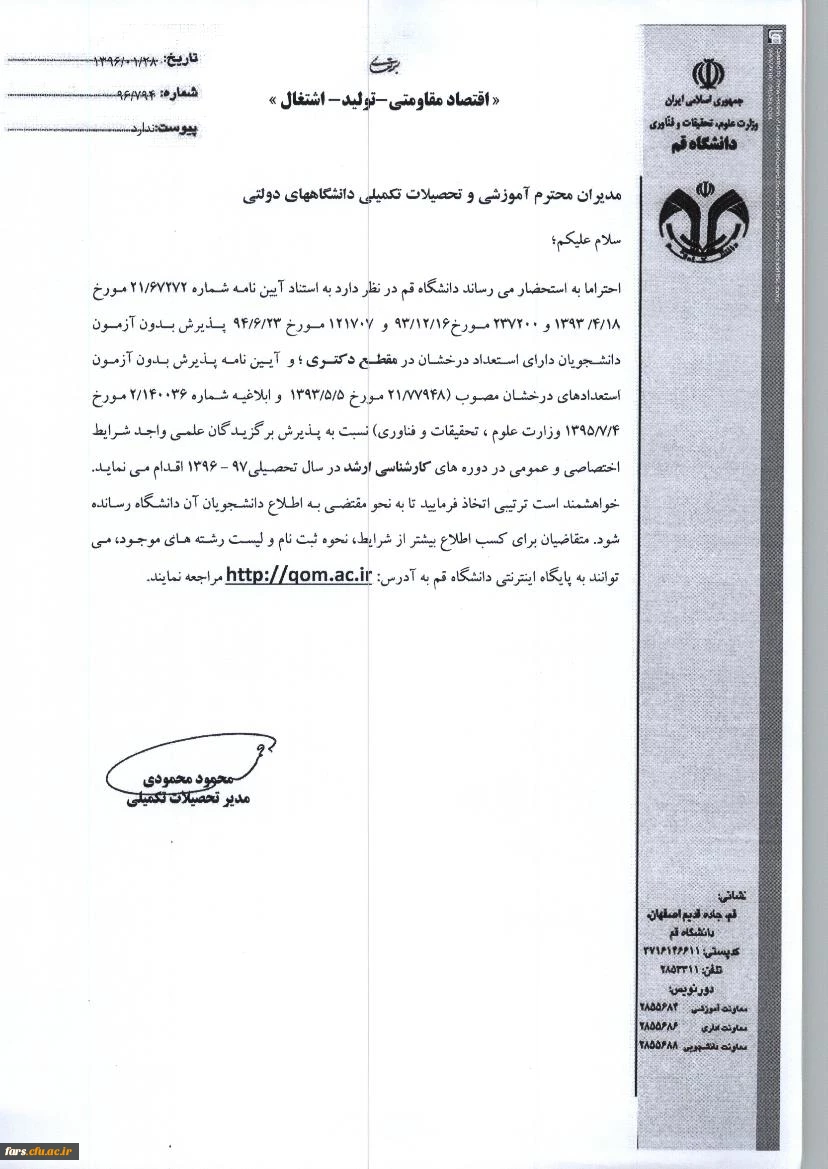 پذیرش بدون آزمون مقطع دکترا دانشگاه قم 2
