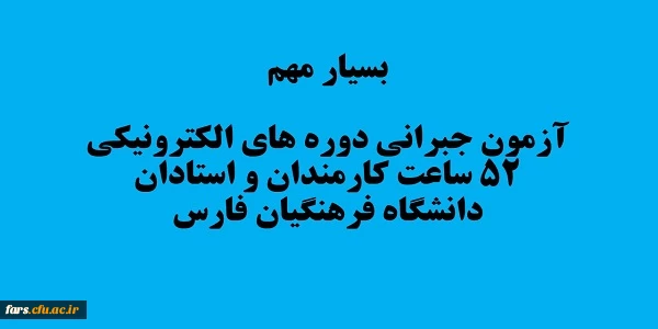 آزمون جبرانی قابل توجه تمامی همکاران و استادان موظف دانشگاه فرهنگیان فارس که در دوره دوم آموزش فناوری اطلاعات 52ساعت شرکت کرده اند 2