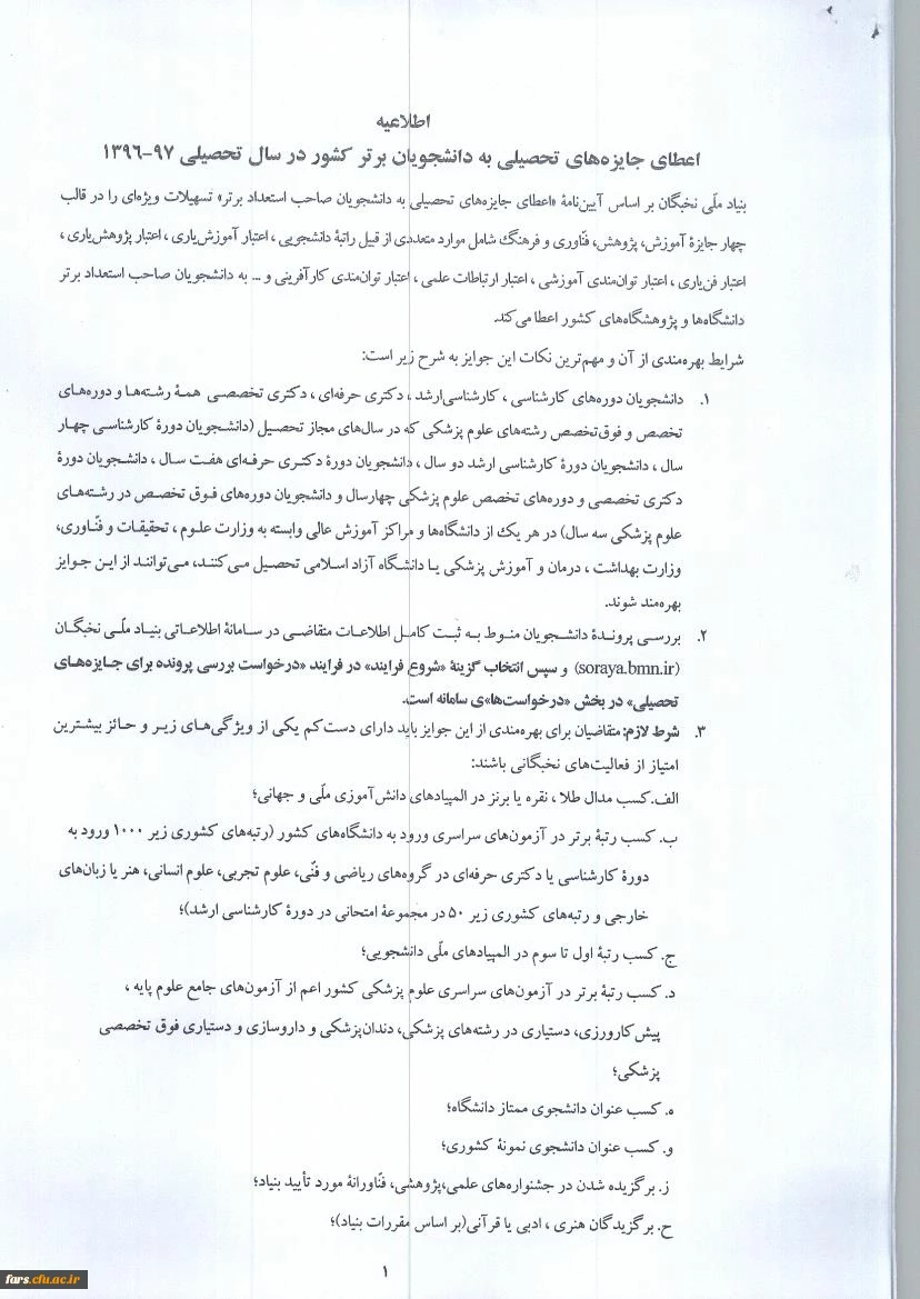 اطلاعیه بنیاد ملی نخبگان 2