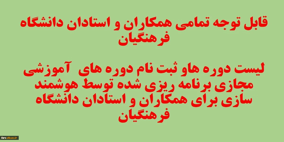 قابل توجه تمامی همکاران و استادان دانشگاه فرهنگیان لیست دوره های آموزشی مجازی برنامه ریزی شده برای همکاران و استادان دانشگاه فرهنگیان 2
