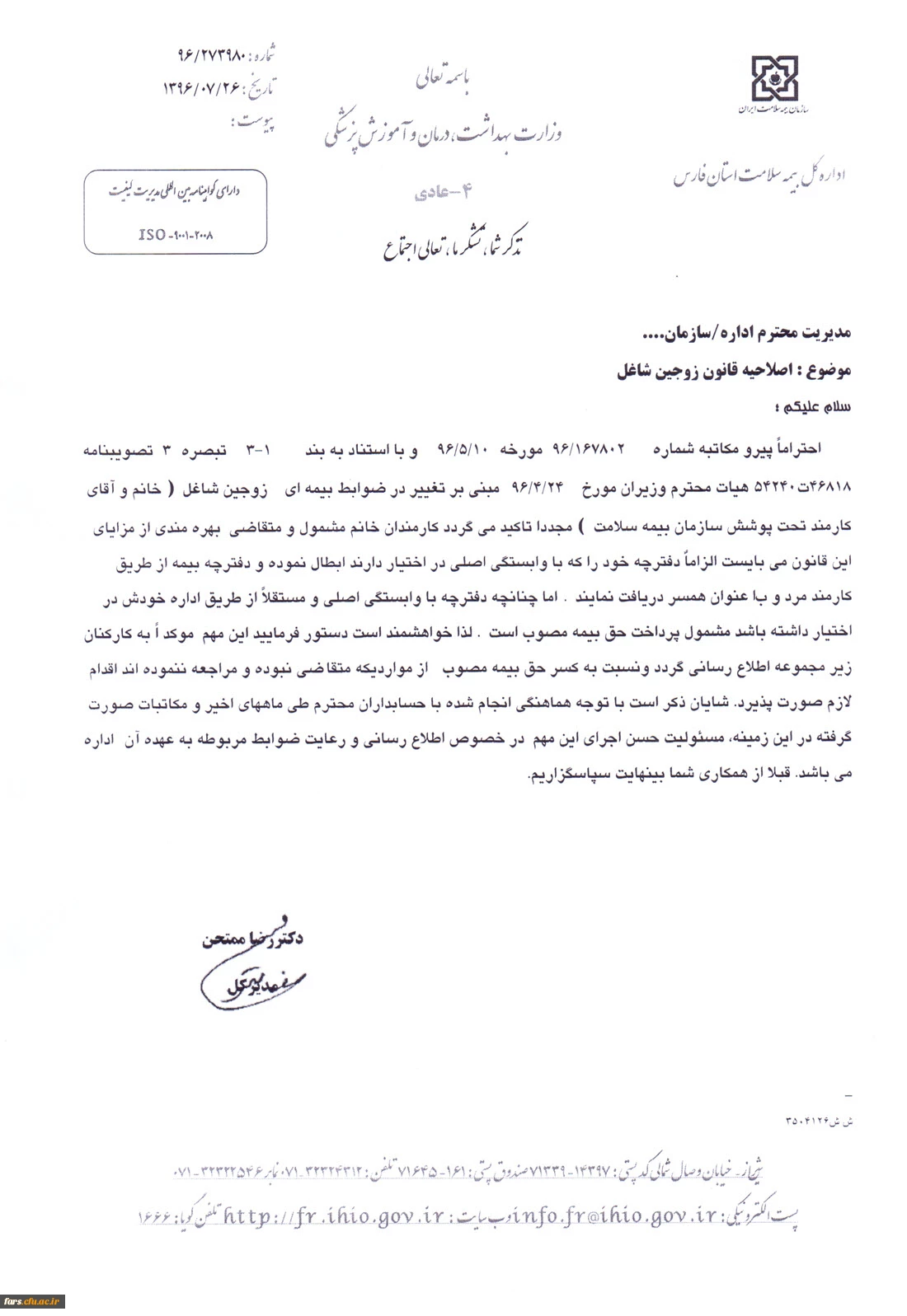 امتیاز دهید : قابل توجه تمامی زوجین شاغل در دانشگاه فرهنگیان فارس اصلاحیه قانون زوجین شاغل 2 شنبه 6 آبان 1396 ساعت 9:50
