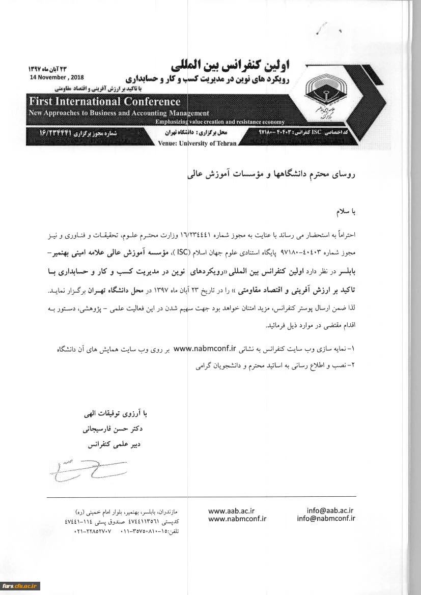 امتیاز دهید : اولین کنفرانس بین المللی رویکردهای نوین در مدیریت کسب و کار و حسابداری 3 شنبه 16 تیر 1397 ساعت 14:46