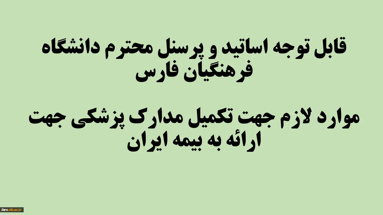 قابل توجه اساتید و پرسنل محترم دانشگاه فرهنگیان فارس موارد لازم جهت تکمیل مدارک پزشکی جهت ارائه به بیمه ایران 2
