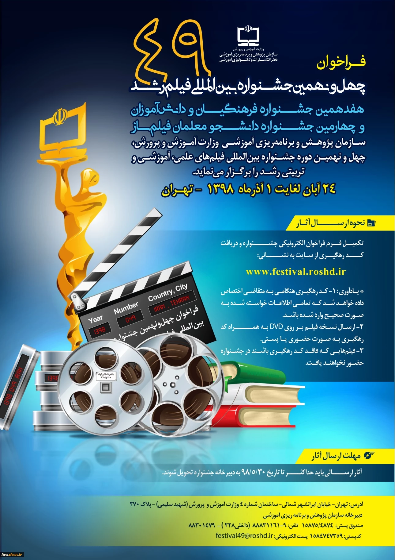 چهل و نهمین جشنواره بین المللی فیلم رشد، هفدهمین جشنواره فرهنگیان و دانش آموزان و چهارمین جشنواره دانشجو معلمان فیلم ساز 2