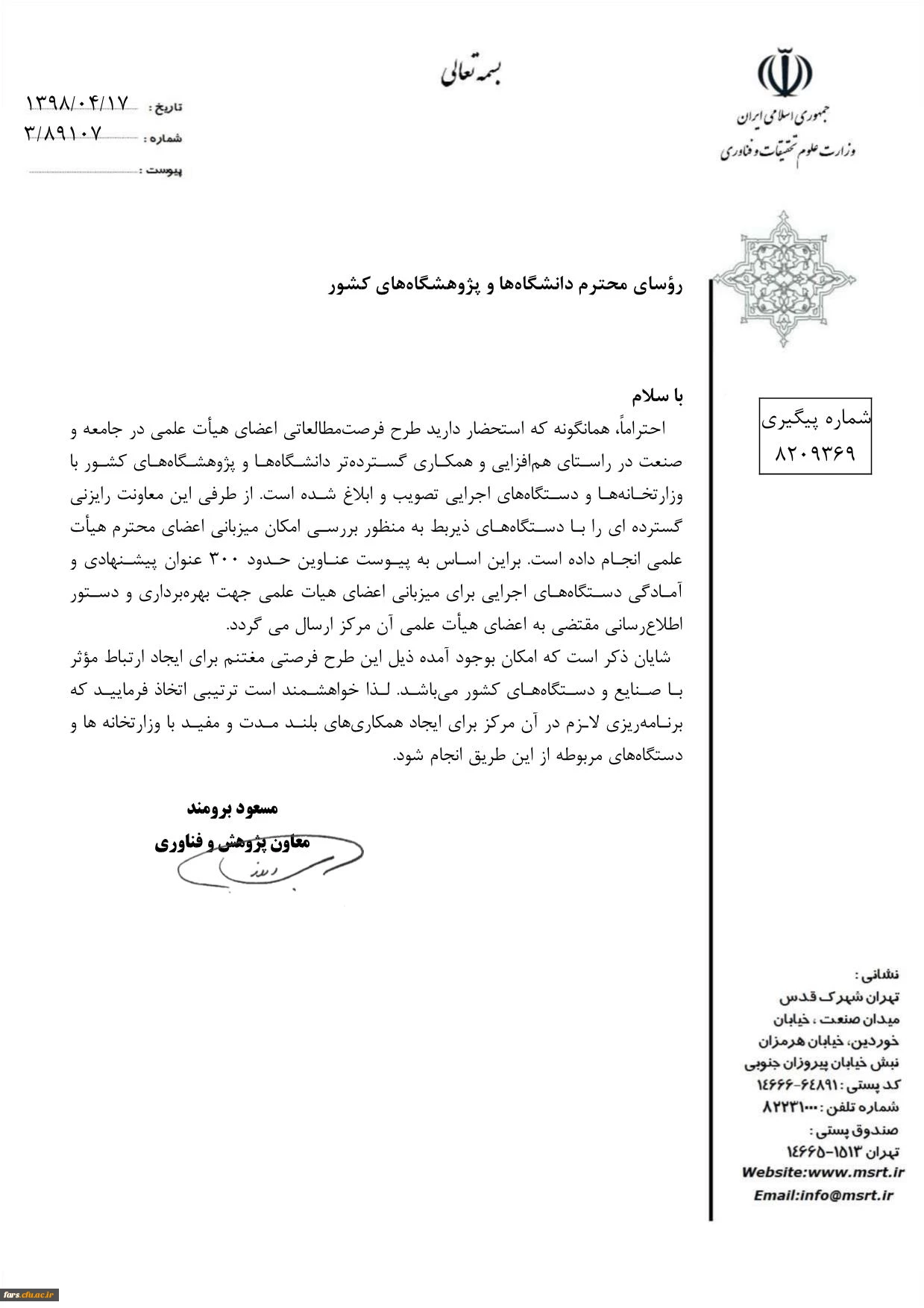 در خواست میزبانی فرصت مطالعا