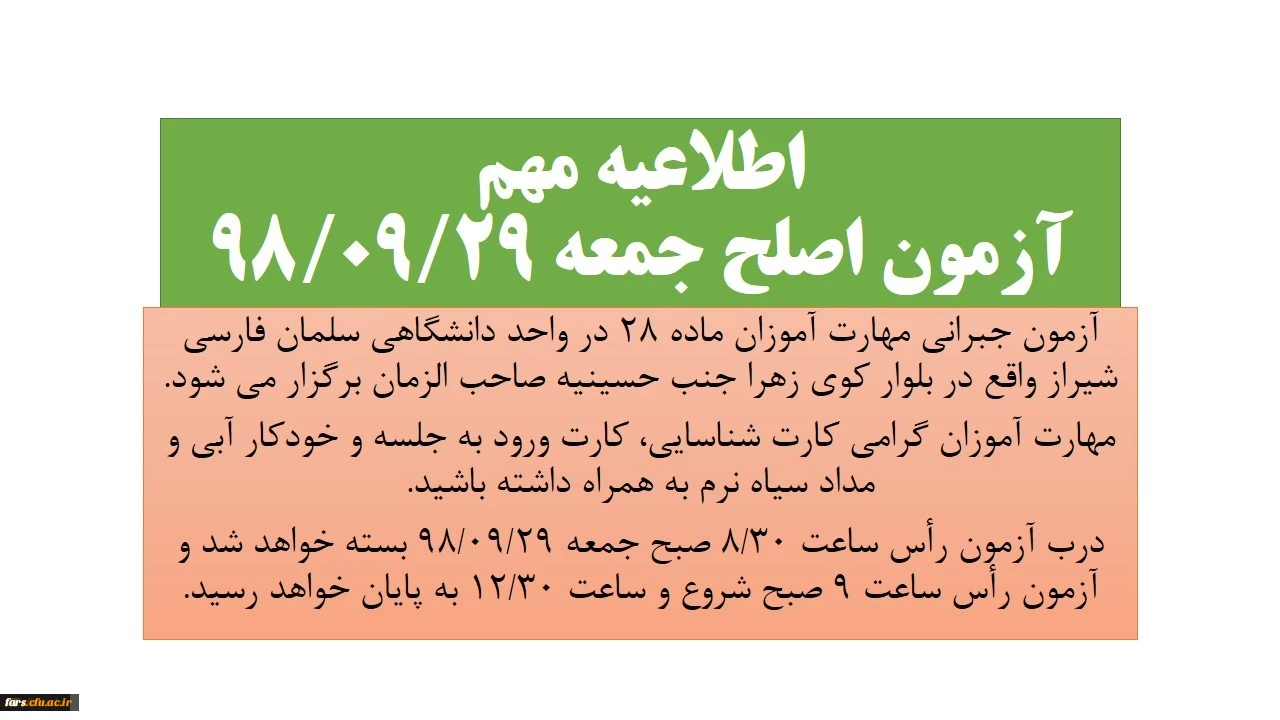 اطلاعیه مهم آزمون اصلح ماده 28 2