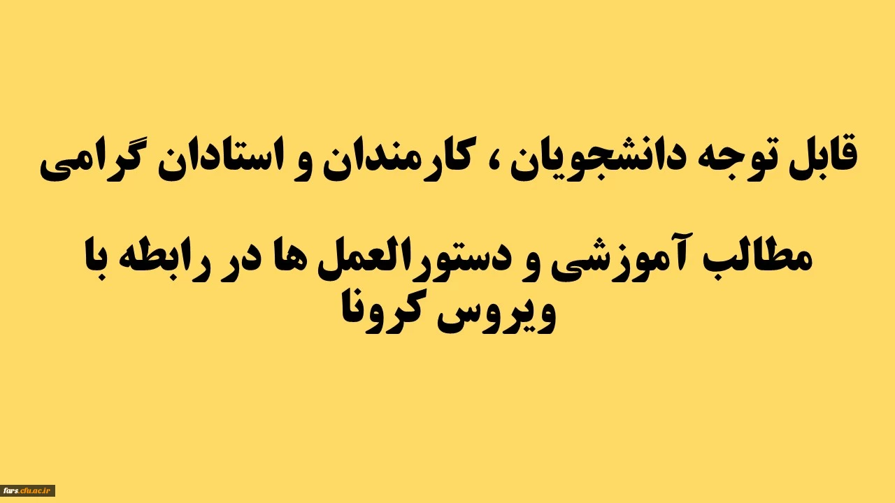 قابل توجه دانشجویان ، کارمندان و استادان گرامی مطالب آموزشی و دستورالعمل ها در رابطه با ویروس کرونا 2