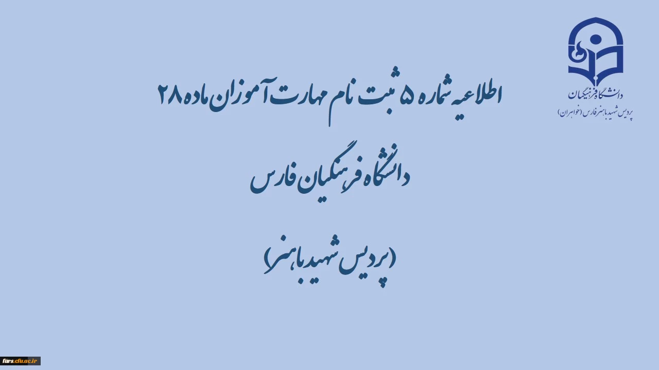 اطلاعیه شماره 5 ثبت نام مهارت آموزان ماده 28 دانشگاه فرهنگیان فارس( پردیس شهید باهنر) 2