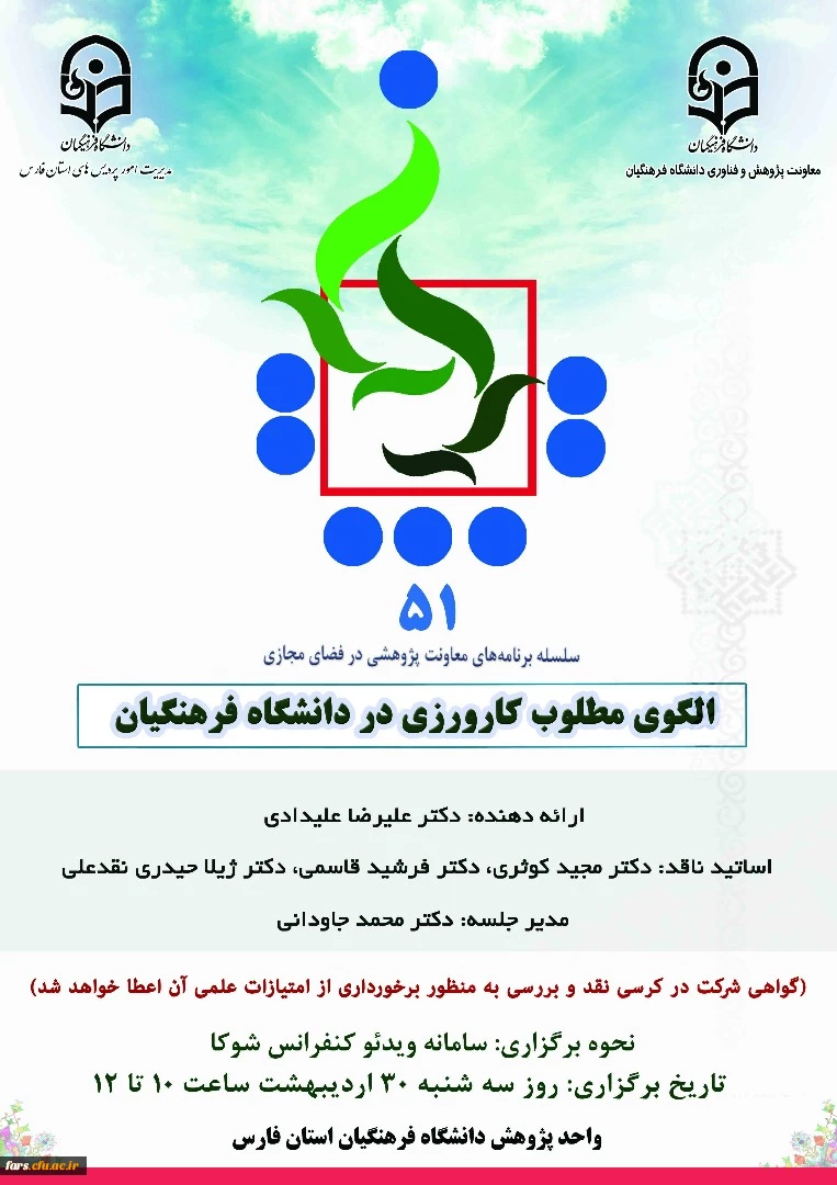 امتیاز دهید : لینک دسترسی "کرسی ترویجی الگوی مطلوب کارورزی در دانشگاه فرهنگیان" 2 دوشنبه 29 اردیبهشت 1399 ساعت 23:53