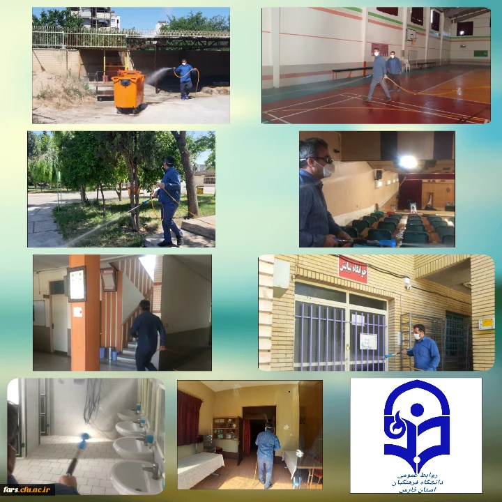 مرحله دوم ضد عفونی و گند زدایی مستمر پردیس ها و مراکز دانشگاه فرهنگیان استان فارس 3