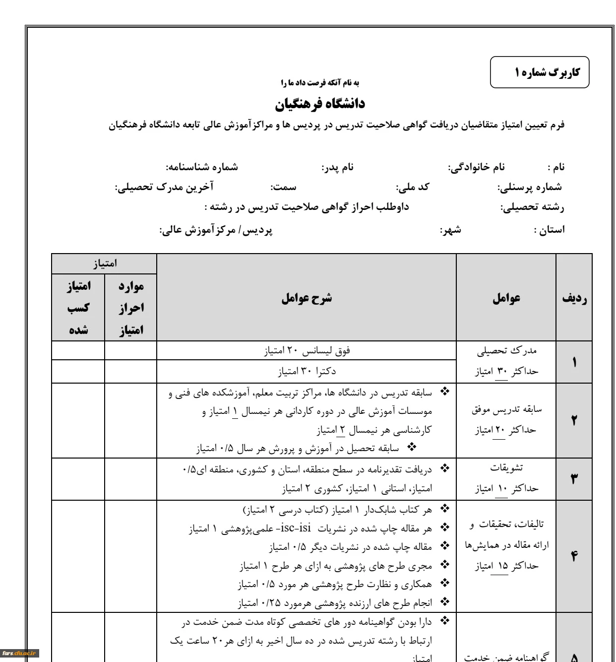 فرم صلاحیت تدریس ص 1