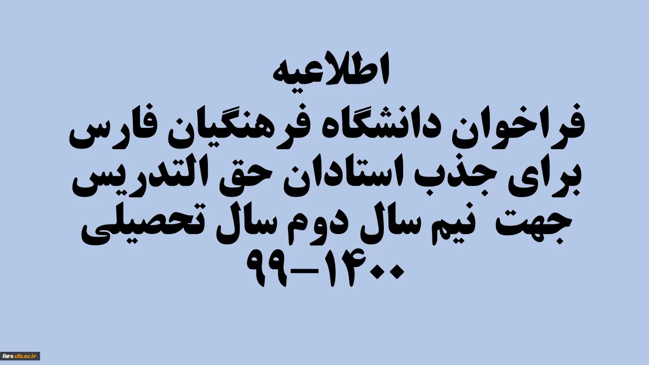 اطلاعیه فراخوان دانشگاه فرهنگیان فارس برای جذب استادان حق التدریس جهت نیم سال دوم سال تحصیلی 1400-99 2
