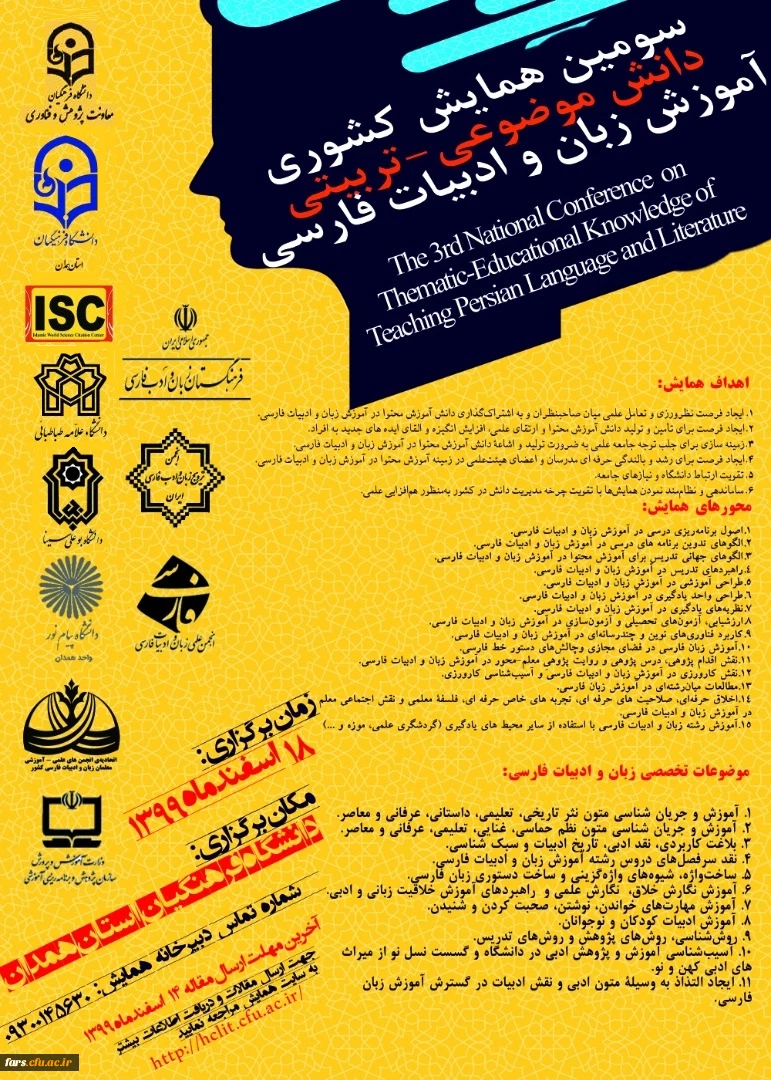 امتیاز دهید : سومین همایش کشوری دانش موضوعی - تربیتی اموزش زبان و ادبیات فارسی 2 دوشنبه 27 بهمن 1399 ساعت 9:00