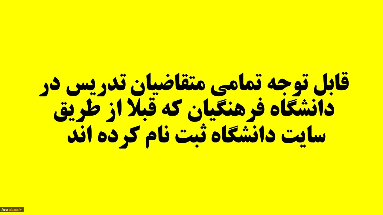 قابل توجه تمامی متقاضیان تدریس در دانشگاه فرهنگیان که قبلا از طریق سایت دانشگاه ثبت نام کرده اند 2