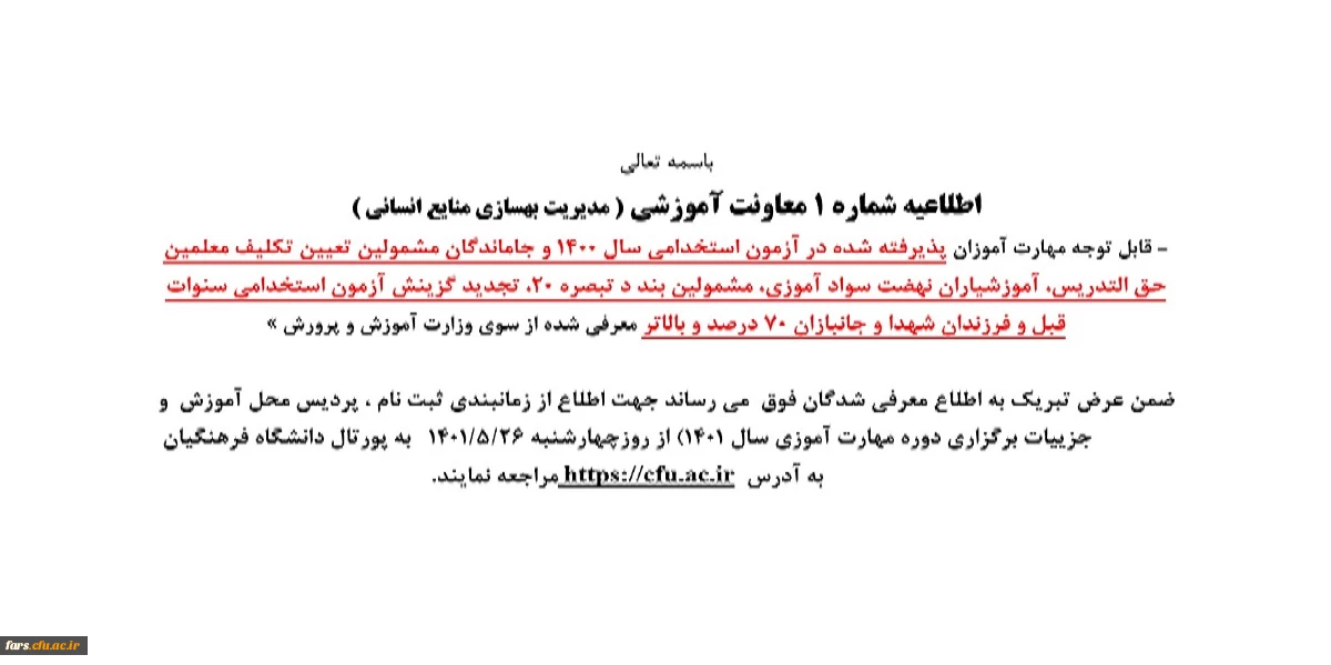 اطلاعیه معاونت آموزشی (مدیریت بهسازی و منابع انسانی) 2