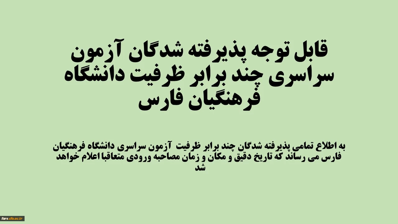 امتیاز دهید : قابل توجه پذیرفته شدگان آزمون سراسری چند برابر ظرفیت دانشگاه فرهنگیان فارس 2 چهارشنبه 2 شهریور 1401 ساعت 8:15