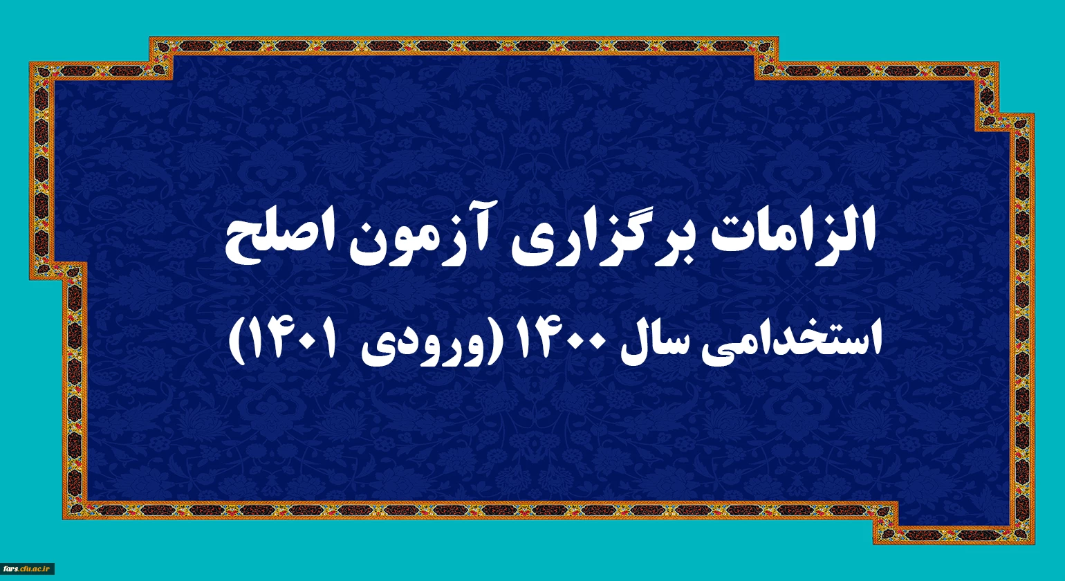 امتیاز دهید : الزامات برگزاری آزمون اصلح استخدامی سال 1400 (ورودی 1401) 2 دوشنبه 1 اسفند 1401 ساعت 14:47