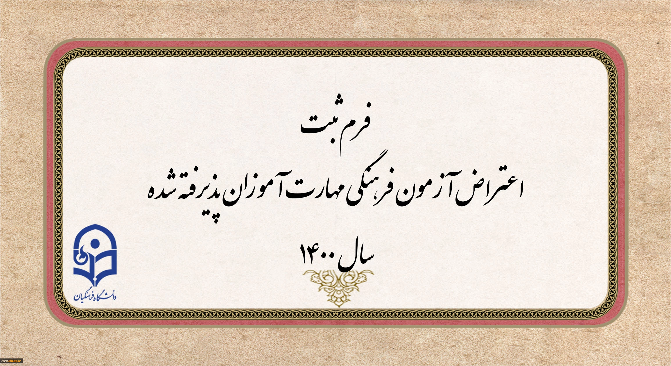 امتیاز دهید : اطلاعیه مهم فرم ثبت اعتراض آزمون فرهنگی مهارت آموزان پذیرفته شده سال 1400 2 چهارشنبه 3 اسفند 1401 ساعت 14:23