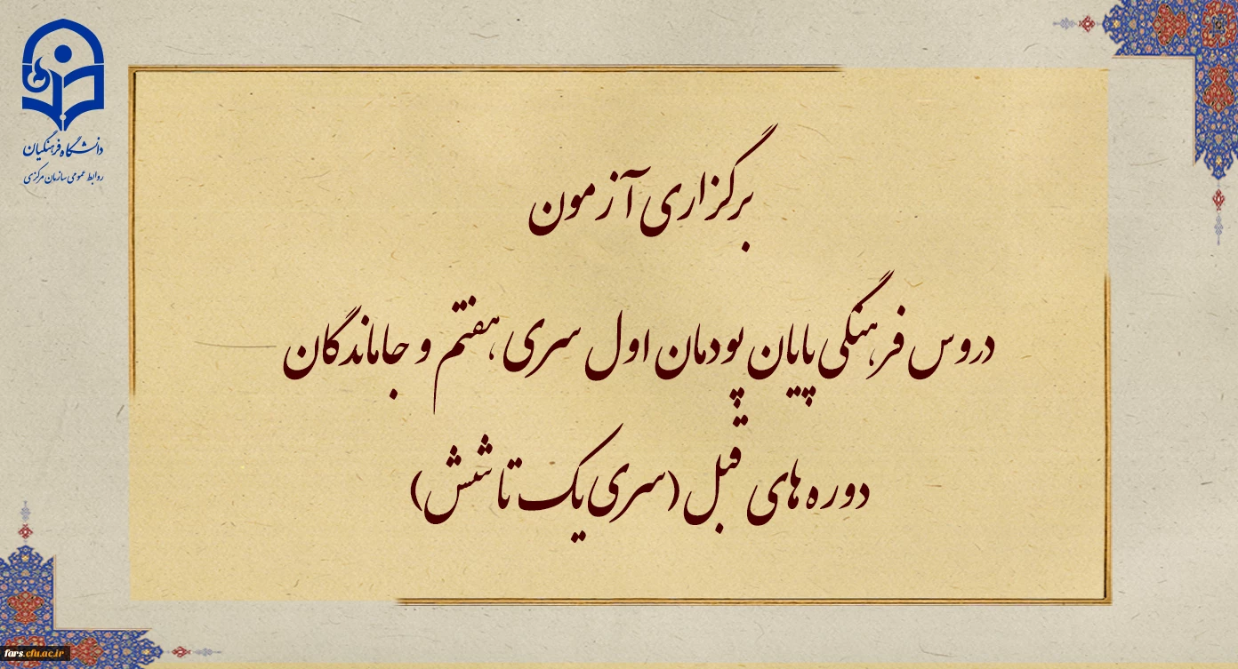 برگزاری آزمون دروس فرهنگی پایان پودمان اول سری هفتم و جاماندگان دوره های قبل(سری یک تا شش) 2