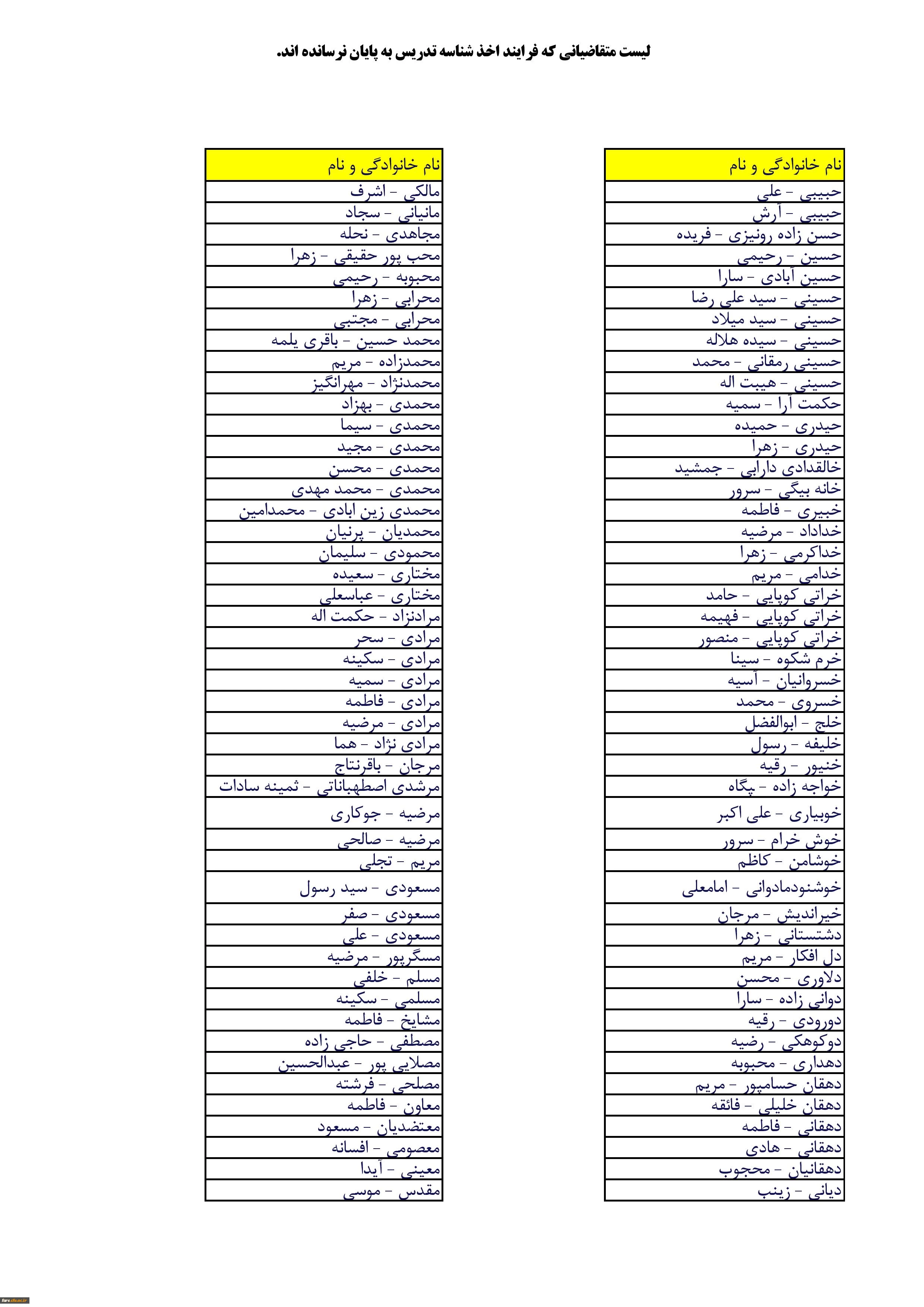 قابل توجه تمامی متقاضیان شناسه تدریس لیست متقاضیان اخذ شناسه تدریس که فرآیند ثبت نام را به پایان نرسانده اند 2