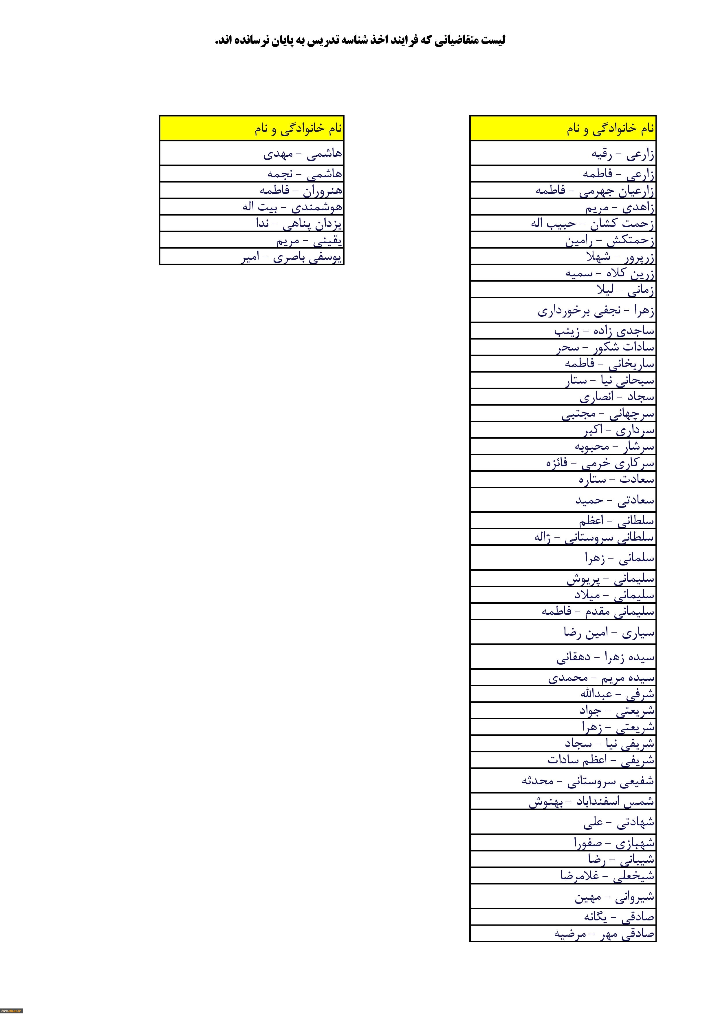 قابل توجه تمامی متقاضیان شناسه تدریس لیست متقاضیان اخذ شناسه تدریس که فرآیند ثبت نام را به پایان نرسانده اند 2