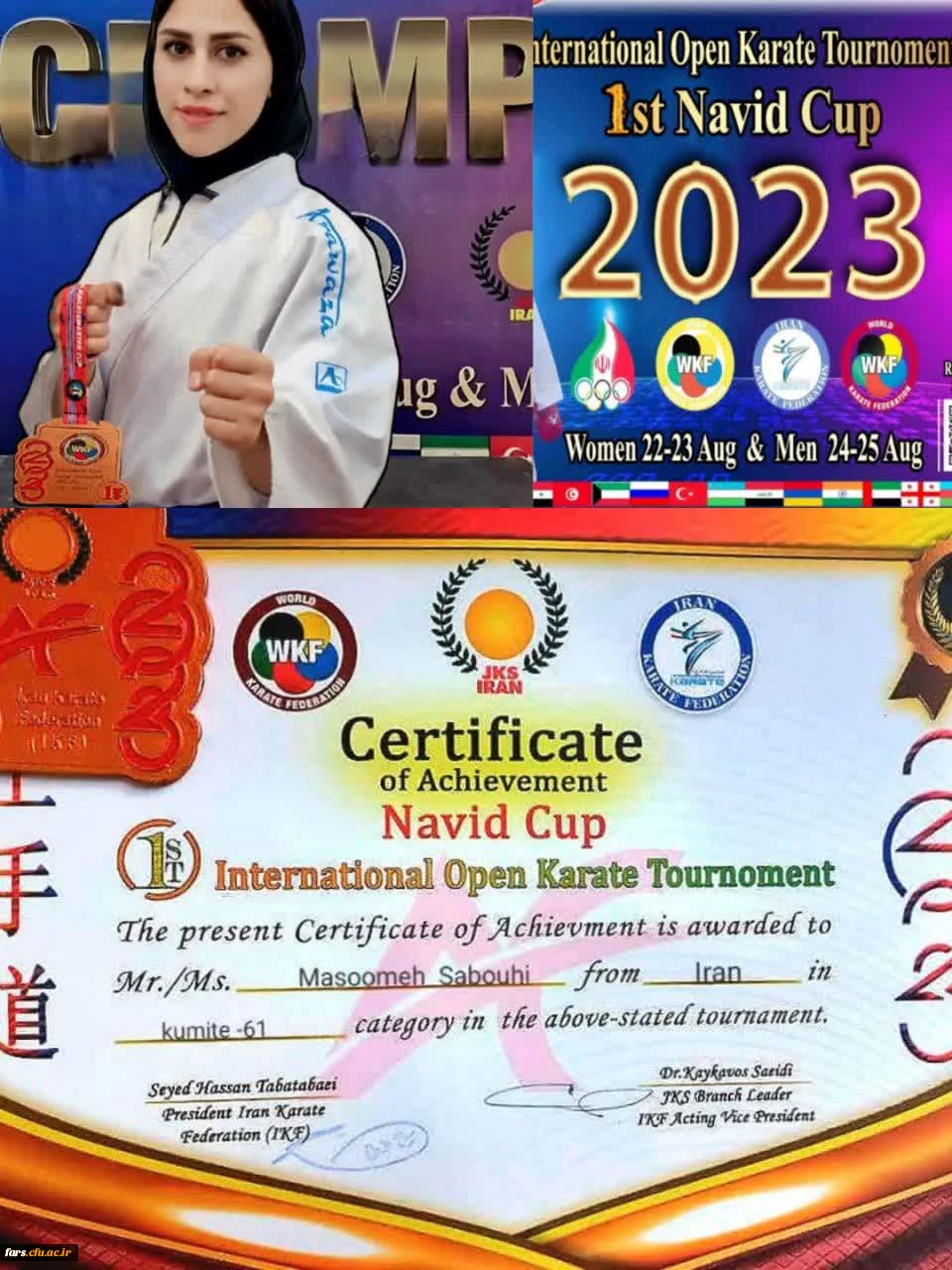 افتخار آفرینی دانشجو معلم رشته تربیت بدنی از پردیس شهید باهنر فارس در مسابقات بین المللی کاراته،جام نوی 2
