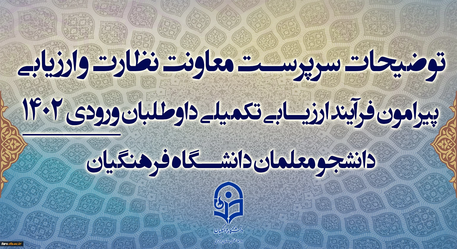 امتیاز دهید : قابل توجه تمامی داوطلبان متقاضی ورود به دانشگاه فرهنگیان 1402-1403 2 جمعه 17 شهریور 1402 ساعت 22:06