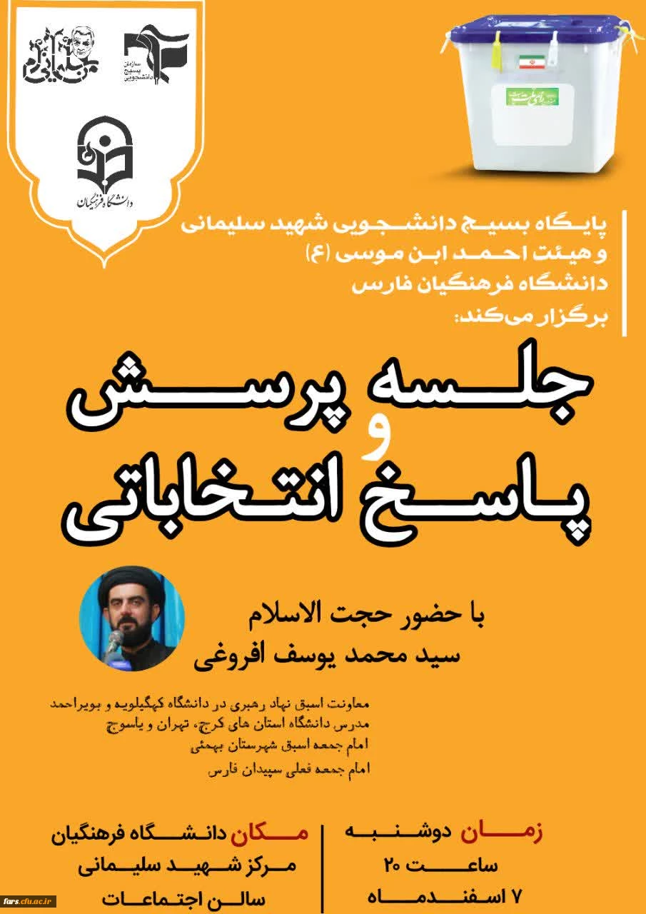 امتیاز دهید : ⭕️ویژه برنامه ی انتخاباتی ١۴٠٢ نشست پرسش وپاسخ دانشجویی 2 یکشنبه 6 اسفند 1402 ساعت 18:03