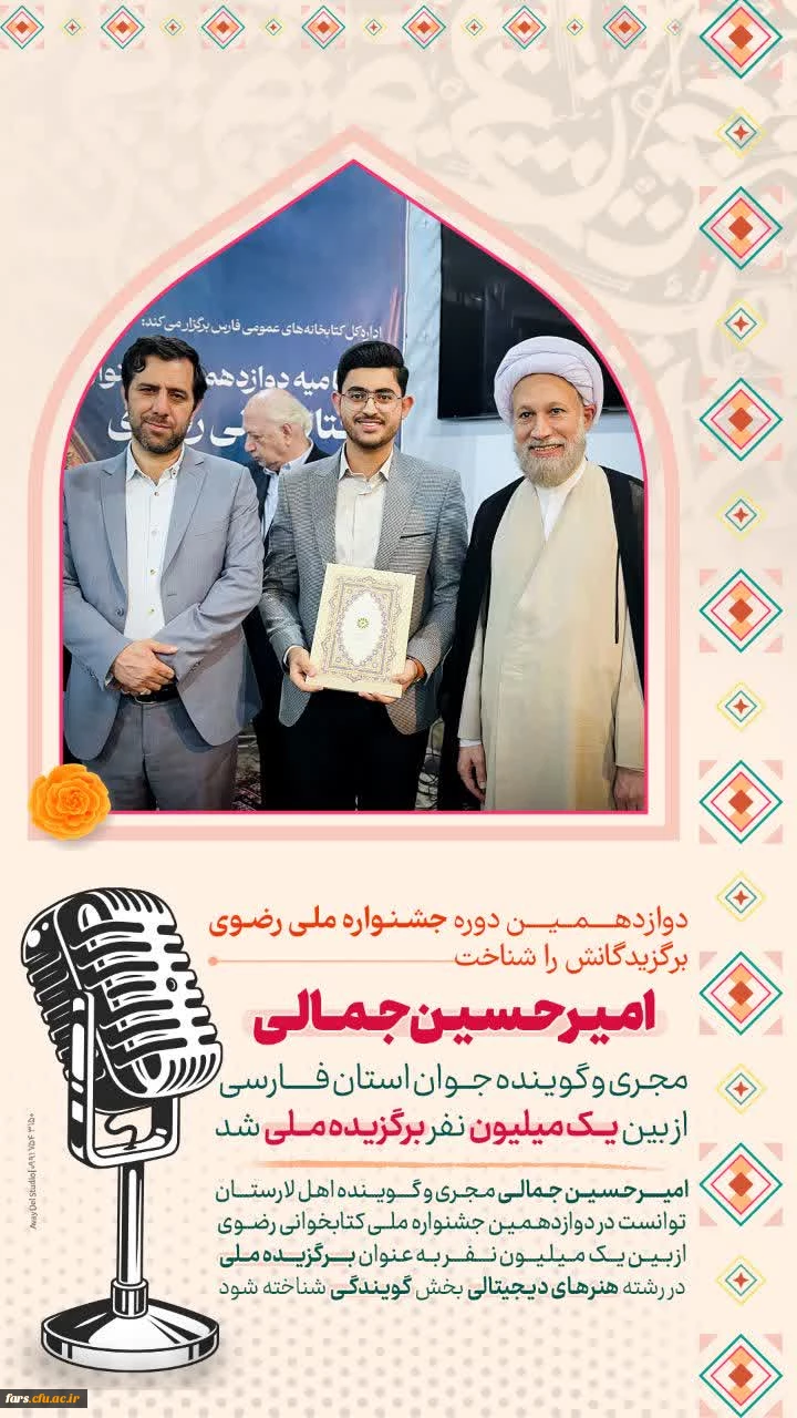 امیرحسین جمالی دانشجو معلمِ مجری و گوینده استان فارسی، از بین یک میلیون نفر، برگزیده ملی شد 2