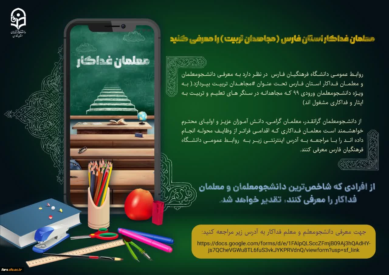 امتیاز دهید : معلمان فداکار استان فارس (مجاهدان تربیت ) را معرفی کنید 2 دوشنبه 3 اردیبهشت 1403 ساعت 10:20