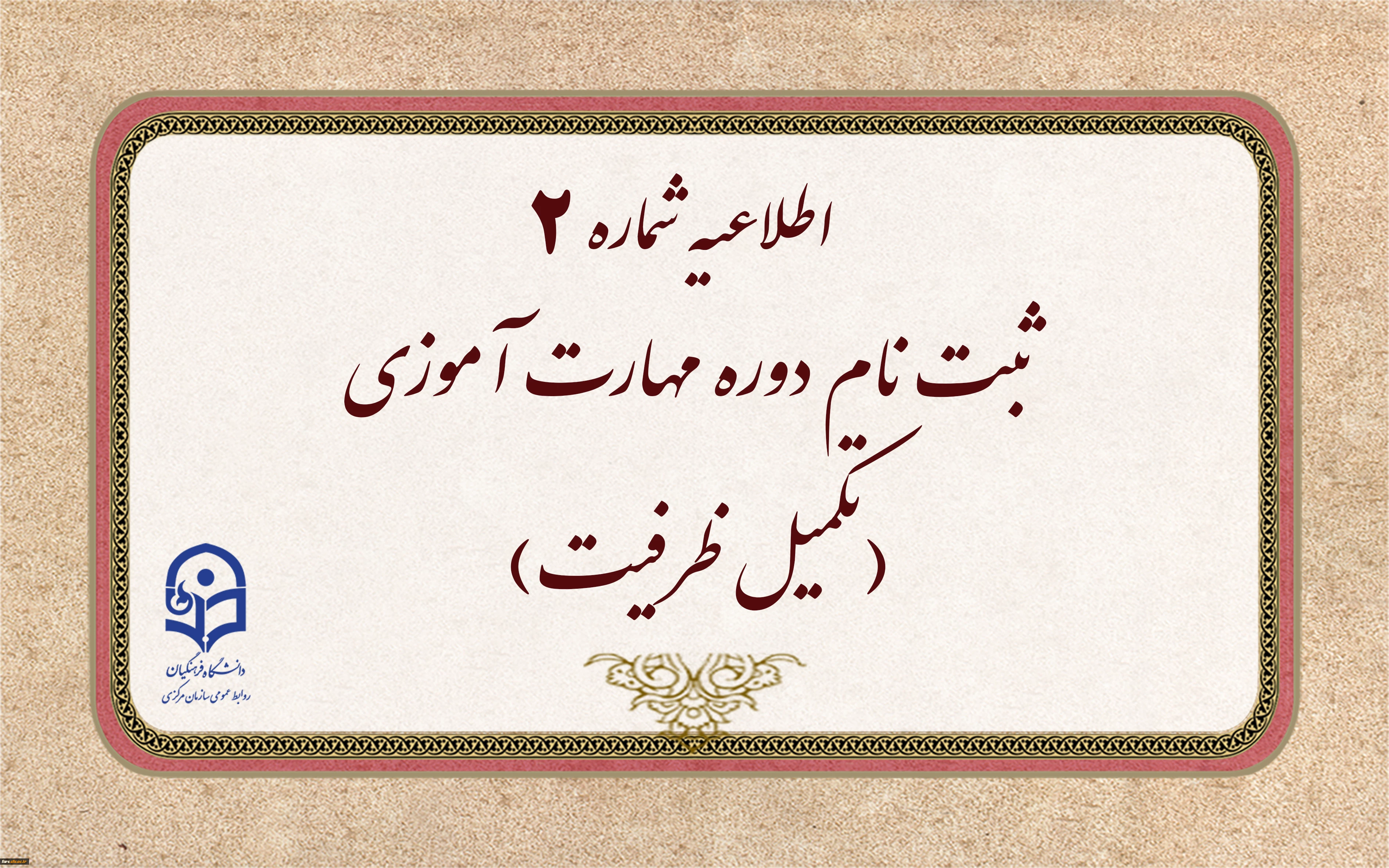 امتیاز دهید : اطلاعیه شماره ۲ ثبت نام دوره مهارت آموزی(تکمیل ظرفیت) 2 چهارشنبه 5 اردیبهشت 1403 ساعت 13:07
