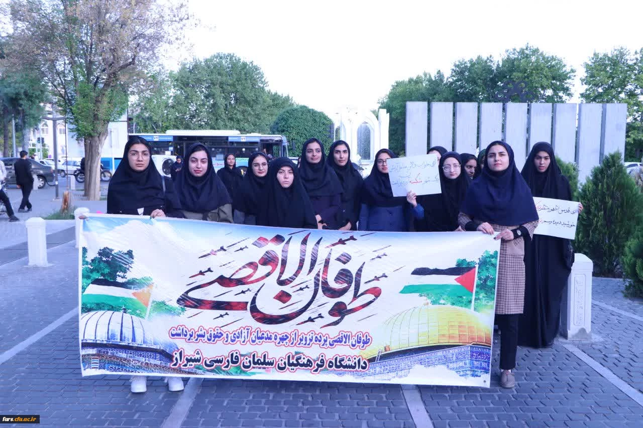 حضور دانشجومعلمان دانشگاه فرهنگیان فارس در مراسم تجمع دانشگاهیان دانشگاه های شیراز در حمایت از خیزش دانشجویان آمریکا و اروپا 3