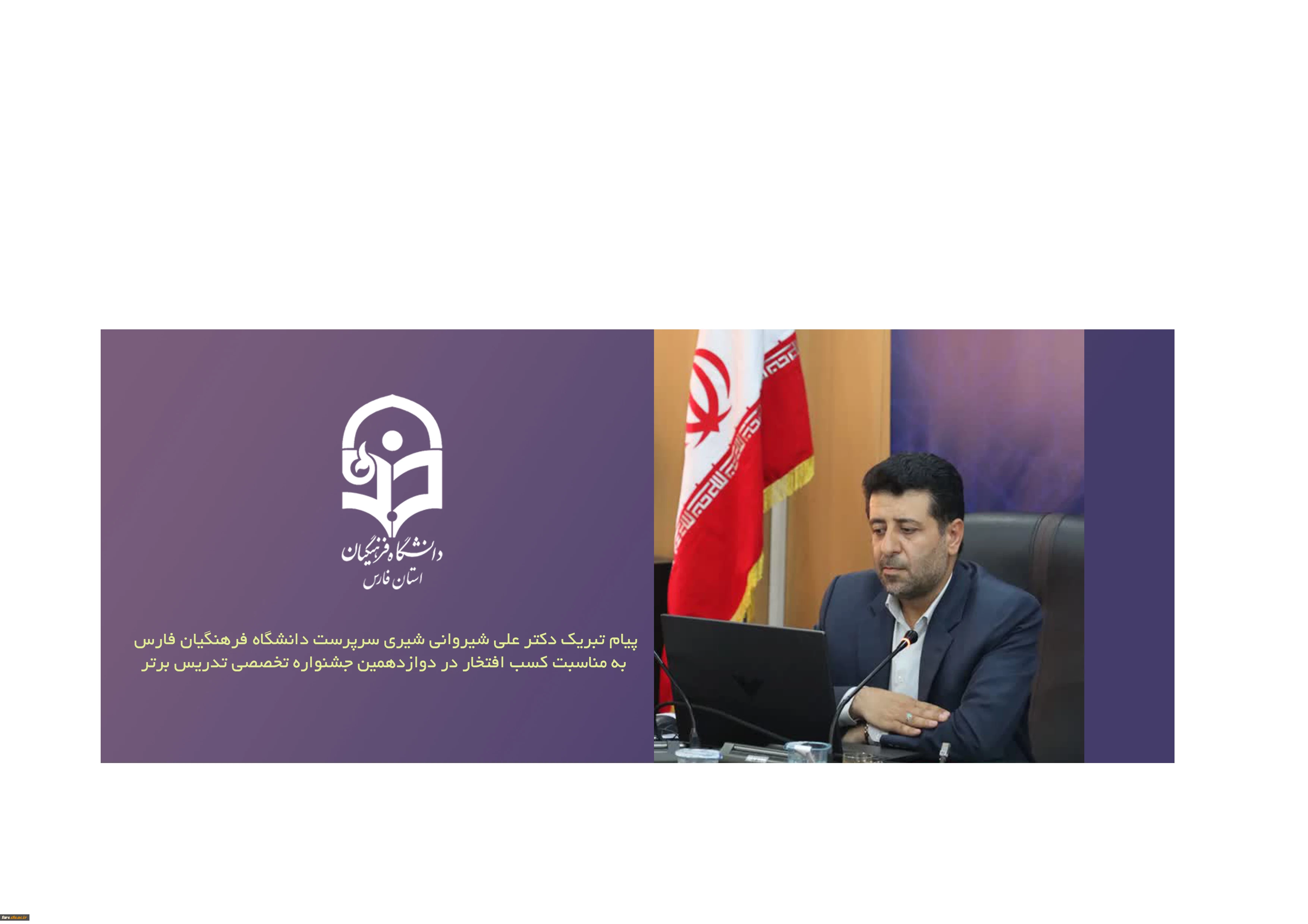 پیام تبریک دکتر علی شیروانی شیری سرپرست دانشگاه فرهنگیان فارس به مناسبت کسب افتخار در دوازدهمین جشنواره تخصصی تدریس برتر 2