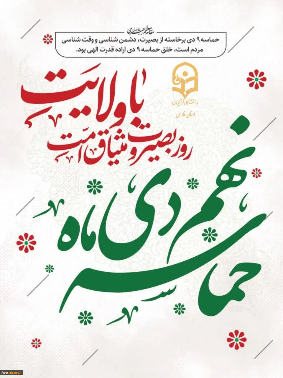 امتیاز دهید : سالروز حماسه 9 دیماه ، روز بصیرت و میثاق امت با ولایت،گرامی باد. 3 سهشنبه 9 دی 1404 ساعت 8:24