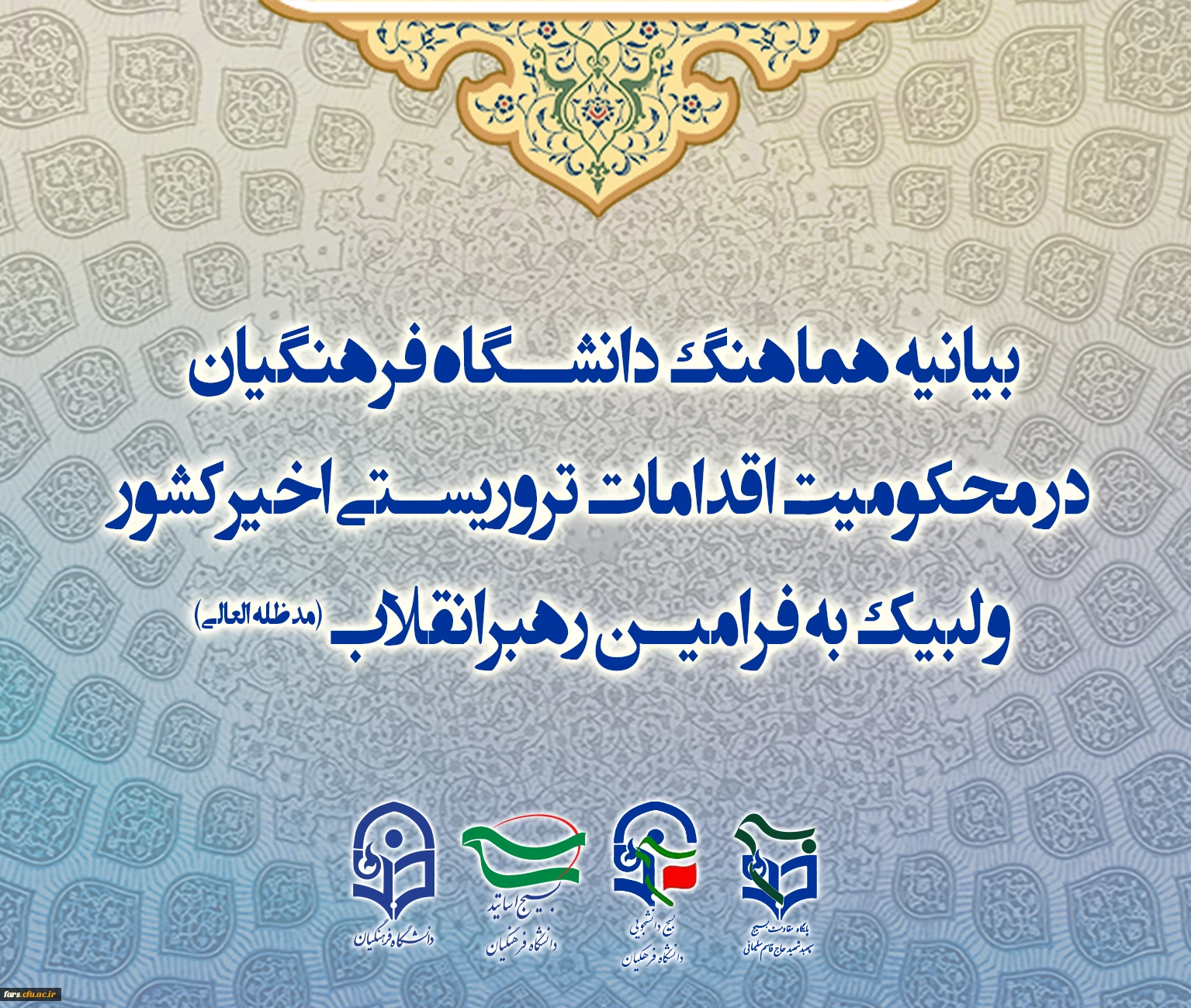 بیانیه هماهنگ دانشگاه فرهنگیان در محکومیت اقدامات تروریستی اخیرکشور و لبیک به فرامین رهبرانقلاب 2