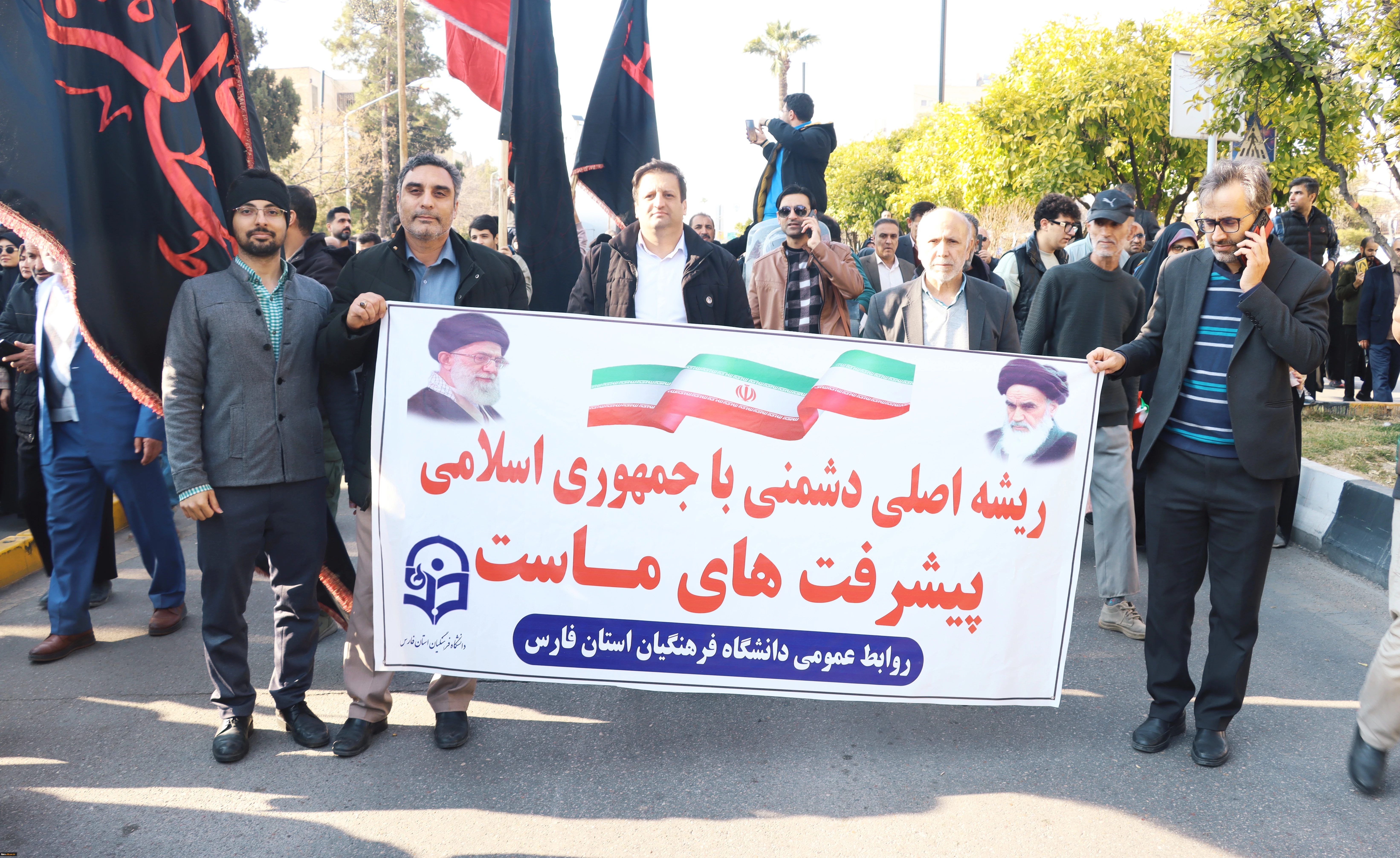 دانشگاه فرهنگیان فارس در حماسه ۲۲ دی ماه همراه آحاد ملت ایران اسلامی فریاد بصیرت، استقامت و استکبارستیزی سر داد