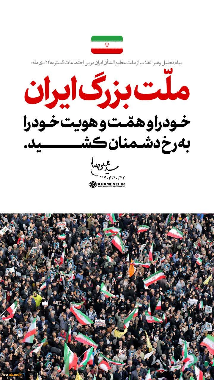 پیام تجلیل رهبر انقلاب از ملّت عظیم الشأن ایران در پی اجتماعات گسترده ۲۲ دی ماه 4